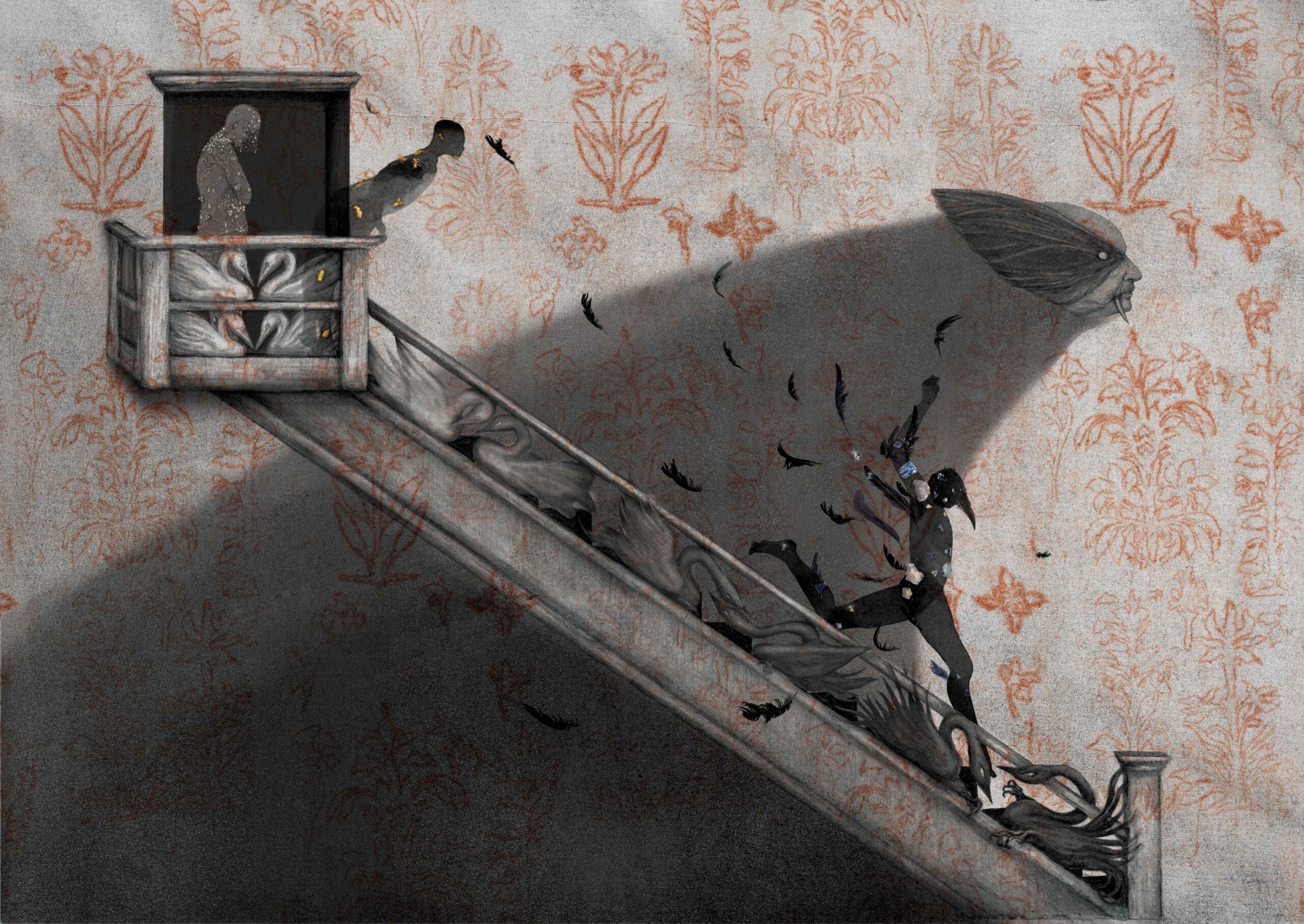 Esta exposición se articula a partir del desarraigo familiar, no como un relato individual, sino como una experiencia femenina compartida. Desde este lugar emergen quiebres generacionales que interrogan las formas de existir —física y psicológicamente— como mujer dentro de nuestra sociedad. El duelo silencioso que atraviesa estas experiencias configura un territorio común marcado por la repetición, la tensión y la ruptura.
