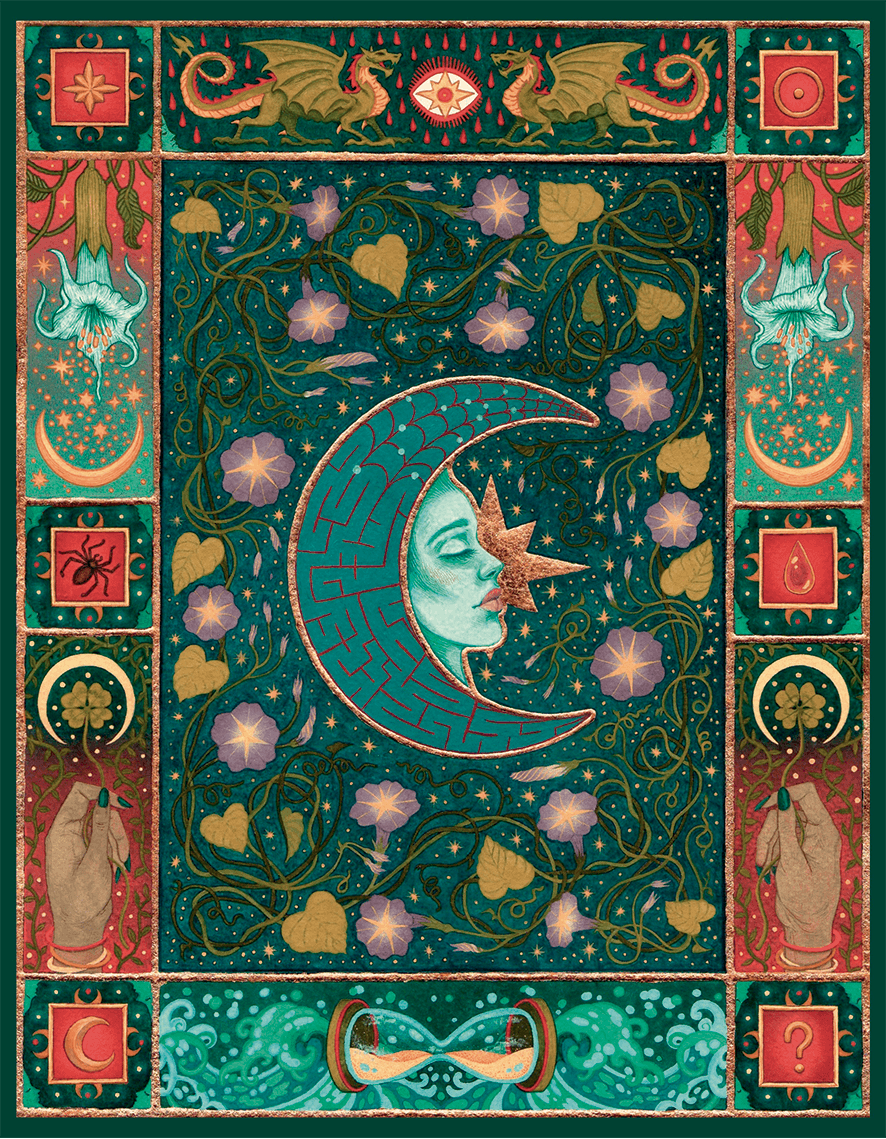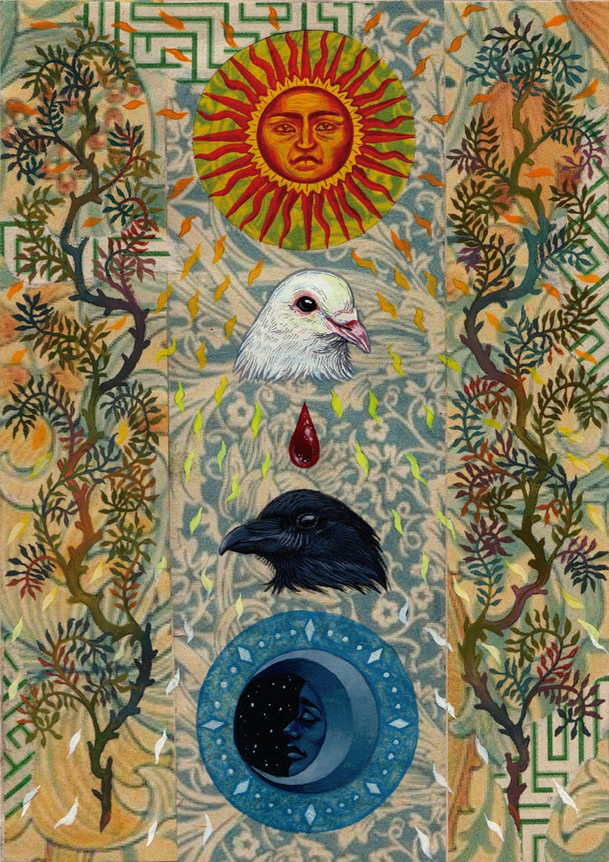 Laura Mancera Rodríguez (Erato Medbh) es una artista visual egresada de la Pontificia Universidad Javeriana con énfasis en artes gráficas. Su obra explora el vínculo entre alquimia, espiritualidad y creación de imagen, integrando dibujo, miniatura, collage y técnicas tradicionales como el gesso y el dorado. Desde una mirada simbólica y mística, aborda temas como la caída, la purificación, la memoria y la transformación del alma. Actualmente combina su práctica artística con la docencia en ilustración y su investigación sobre los procesos interiores del arte como vía de conocimiento.